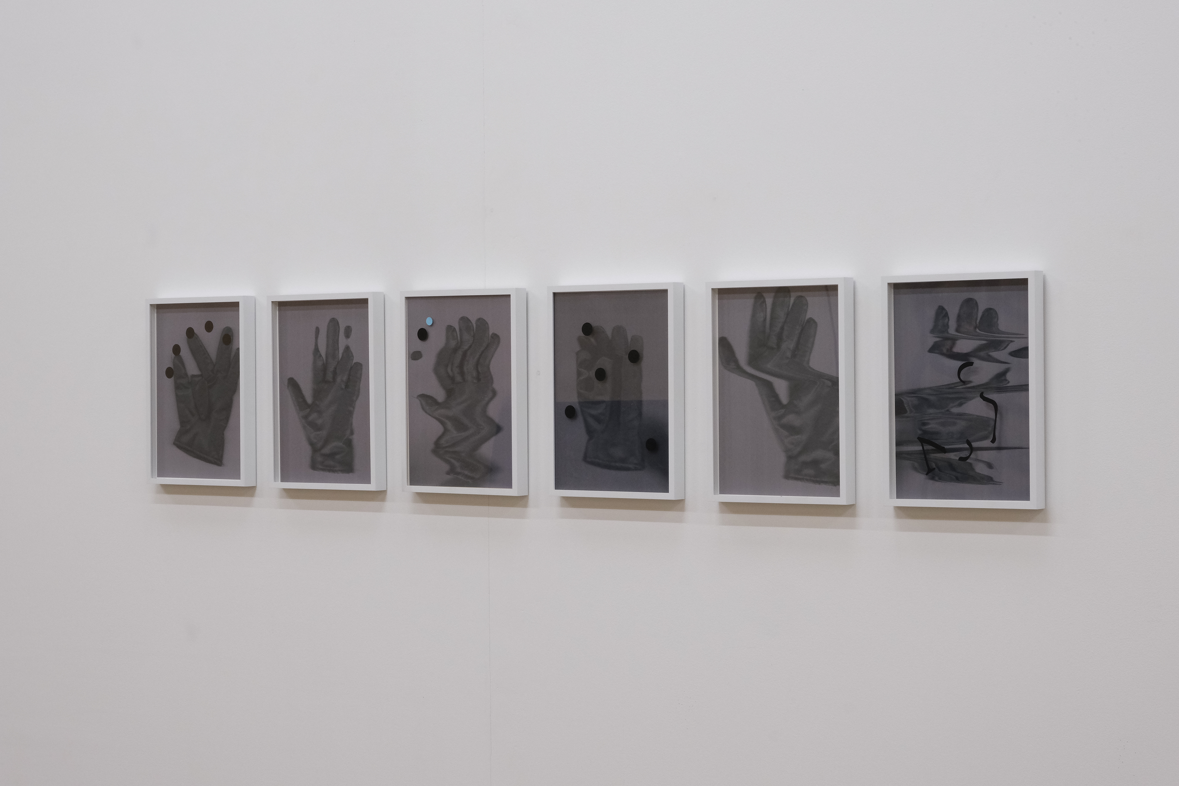 Les gants, 2021, impressions jet d'encre sur papier mat et gommettes, 21 x 29,7 cm chaque
