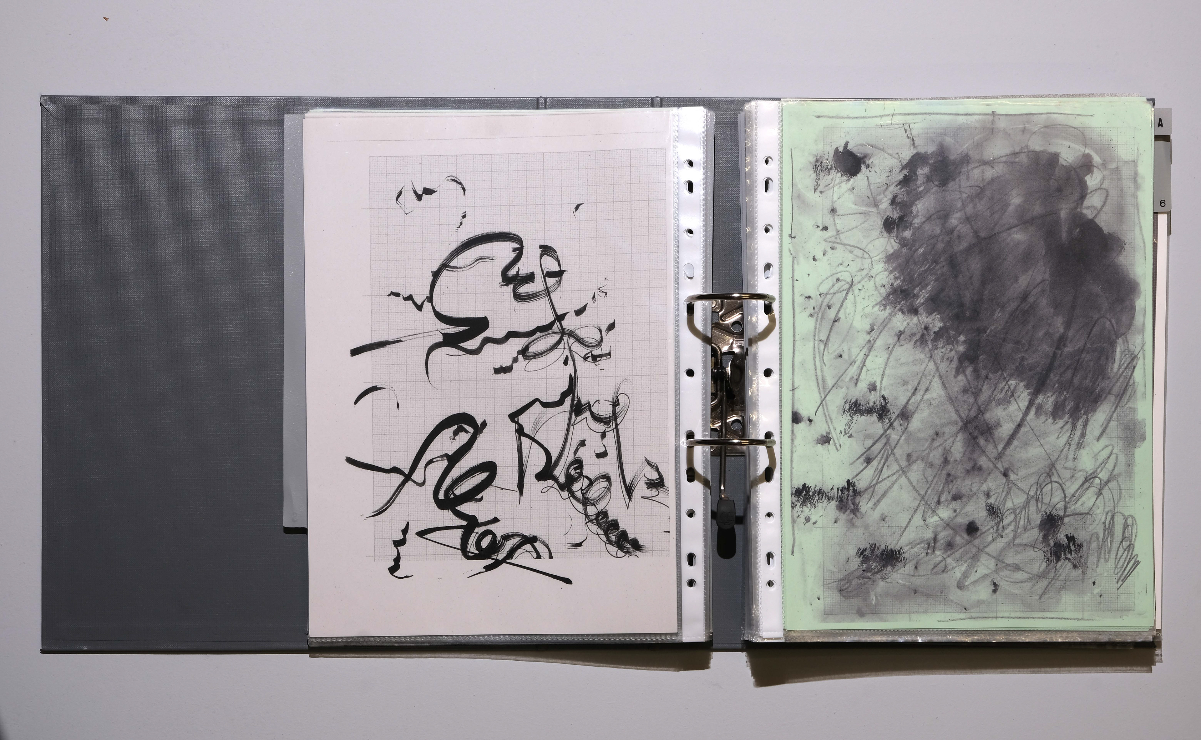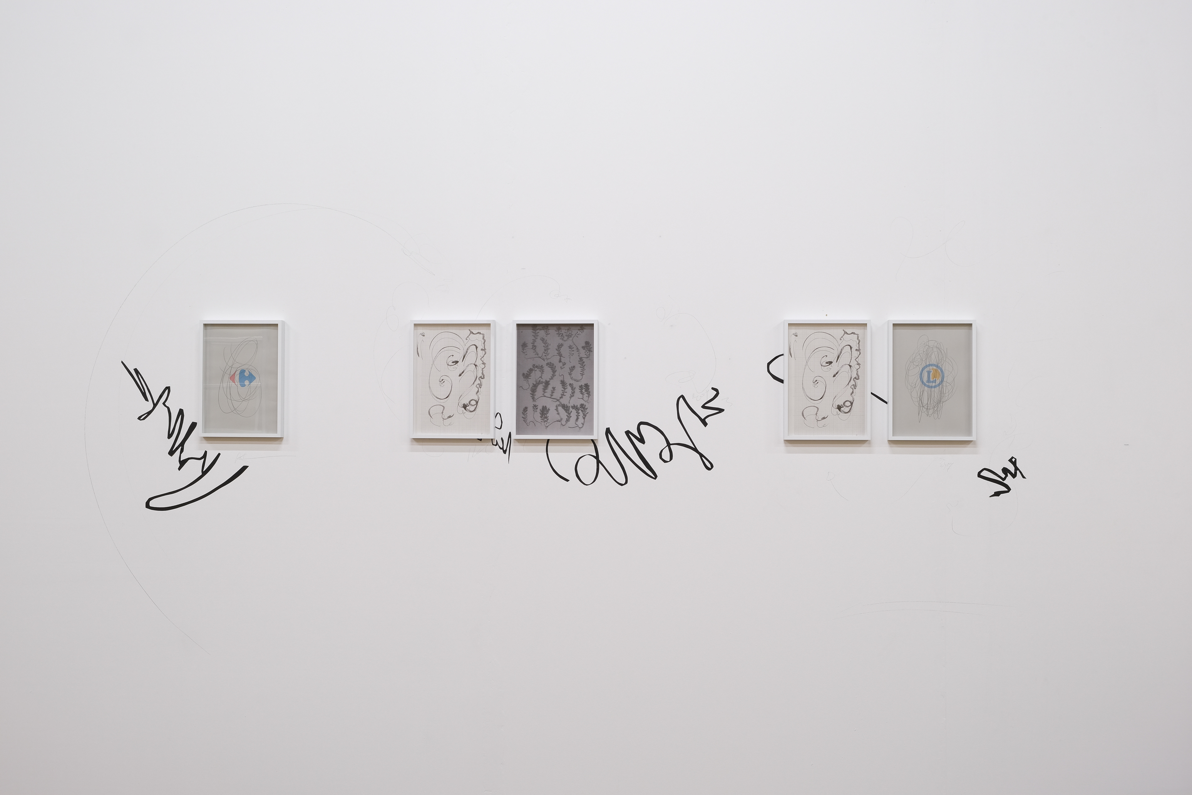 C ne peut sortir de ma tête, essayer de se souvenir, par les mains, cartographier, la face, a disparue l'écriture, C le L a gagné, 2020, vinyle adhésif, impression jet d’encre et crayon sur papier, 21 x 29,7 cm chaque