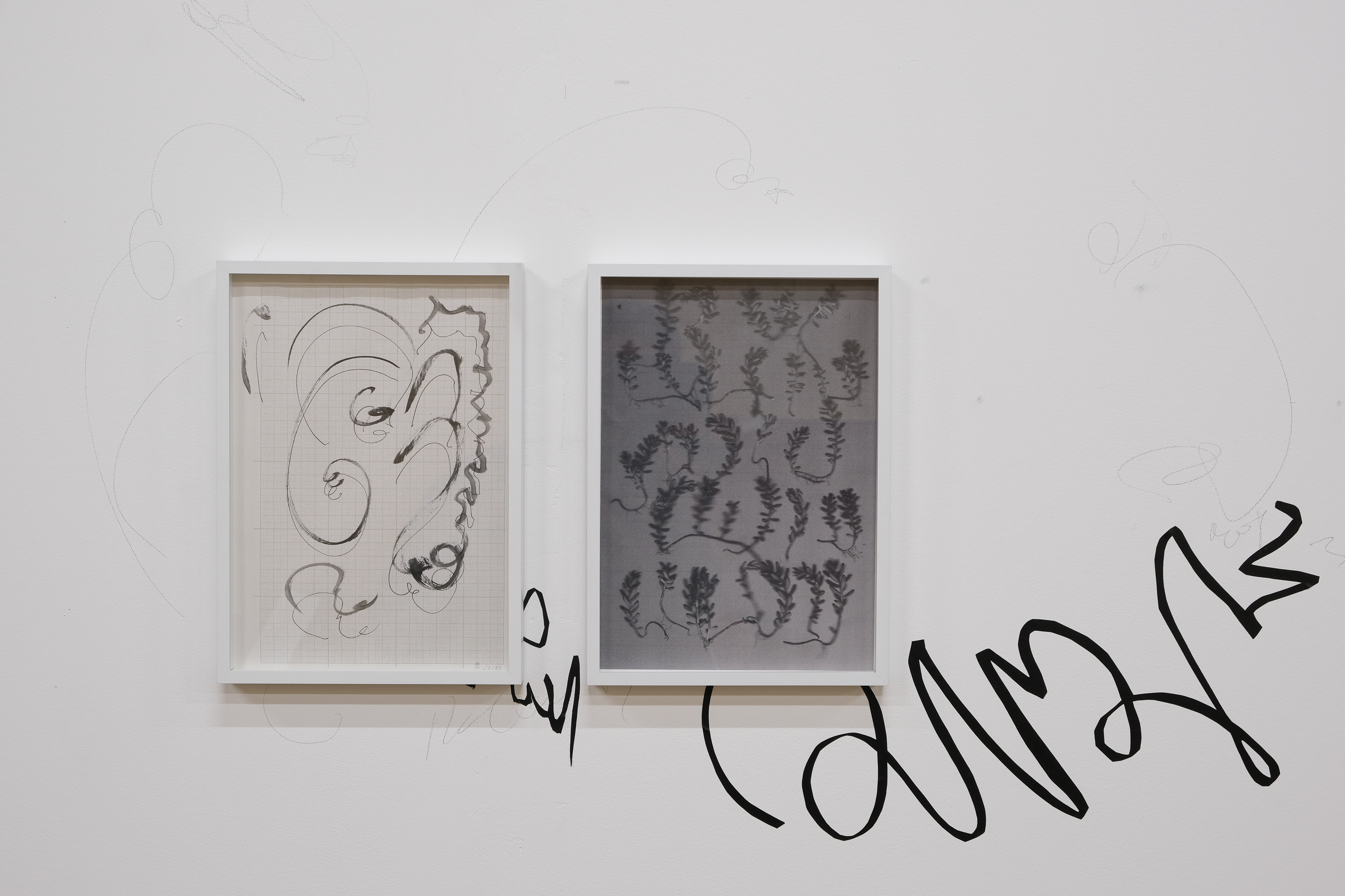 Le S de mon bras en fumée, 2021, peinture acrylique et impression jet d'encre sur papier mat encadrées, 280 x 80 cm